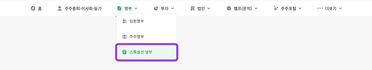 1. 홈 화면에서 스톡옵션 명부 페이지로 이동하세요.